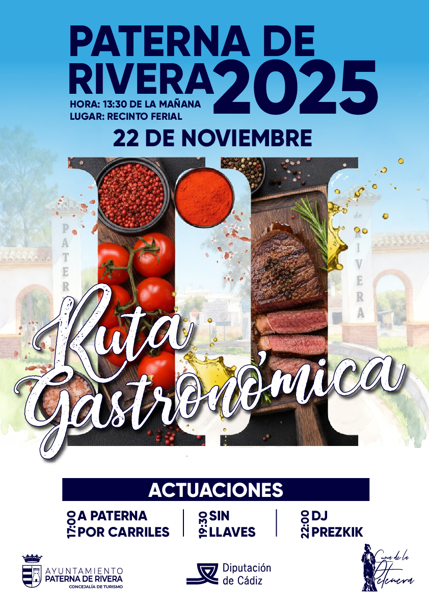 Paterna de Rivera celebra la II Feria Gastronómica el sábado 22 de noviembre, a partir de las 13:30 h en el recinto ferial, con una jornada de tapas de los restaurantes locales a precios populares y ambiente festivo para todos los públicos.
