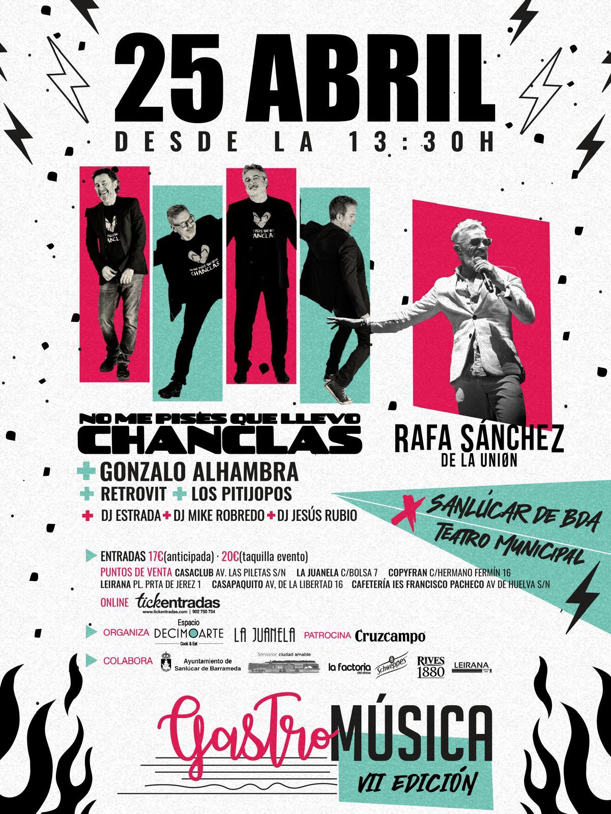 La VII edición de GastroMúsica Sanlúcar de Barrameda vuelve el 11 de abril de 2026 con “Toreo con chanclás”, una cita que mezcla conciertos y sesión DJ con un tono festivo y desenfadado, pensada para vivir la música en directo y el ambiente de feria gastronómica en una misma jornada.