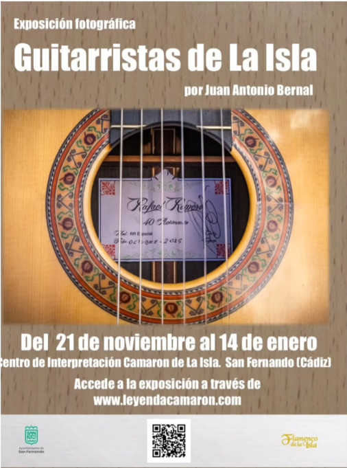 La exposición fotográfica “Guitarristas de La Isla” reúne las imágenes de 29 guitarristas de San Fernando captadas por el objetivo de Juan Antonio Sánchez Bernal. La muestra podrá visitarse del 21 de noviembre al 14 de enero de 2026 en la primera planta del Centro de Interpretación Camarón de La Isla – Museo de Camarón, ofreciendo un recorrido visual por algunos de los nombres que mantienen viva la tradición guitarrística de la ciudad.