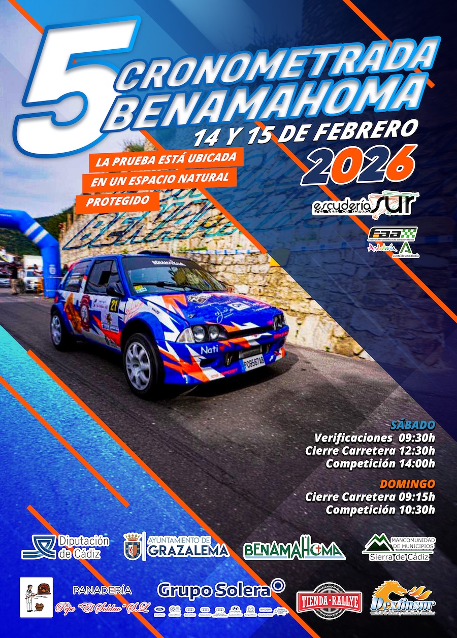 La V Cronometrada de Benamahoma se celebrará los días 14 y 15 de febrero, con el apoyo de la Diputación, como primera prueba del calendario automovilístico andaluz y provincial. La competición se desarrolla en un entorno de gran atractivo paisajístico en la Sierra de Cádiz y plantea un trazado corto pero muy intenso, con 1,2 kilómetros de recorrido y varios tramos especialmente vistosos. La organización prevé una participación en torno a una veintena de vehículos y estima que el evento puede reunir cerca de un millar de asistentes, con especial presencia de car cross, que podrían representar alrededor del 40% de los inscritos.
