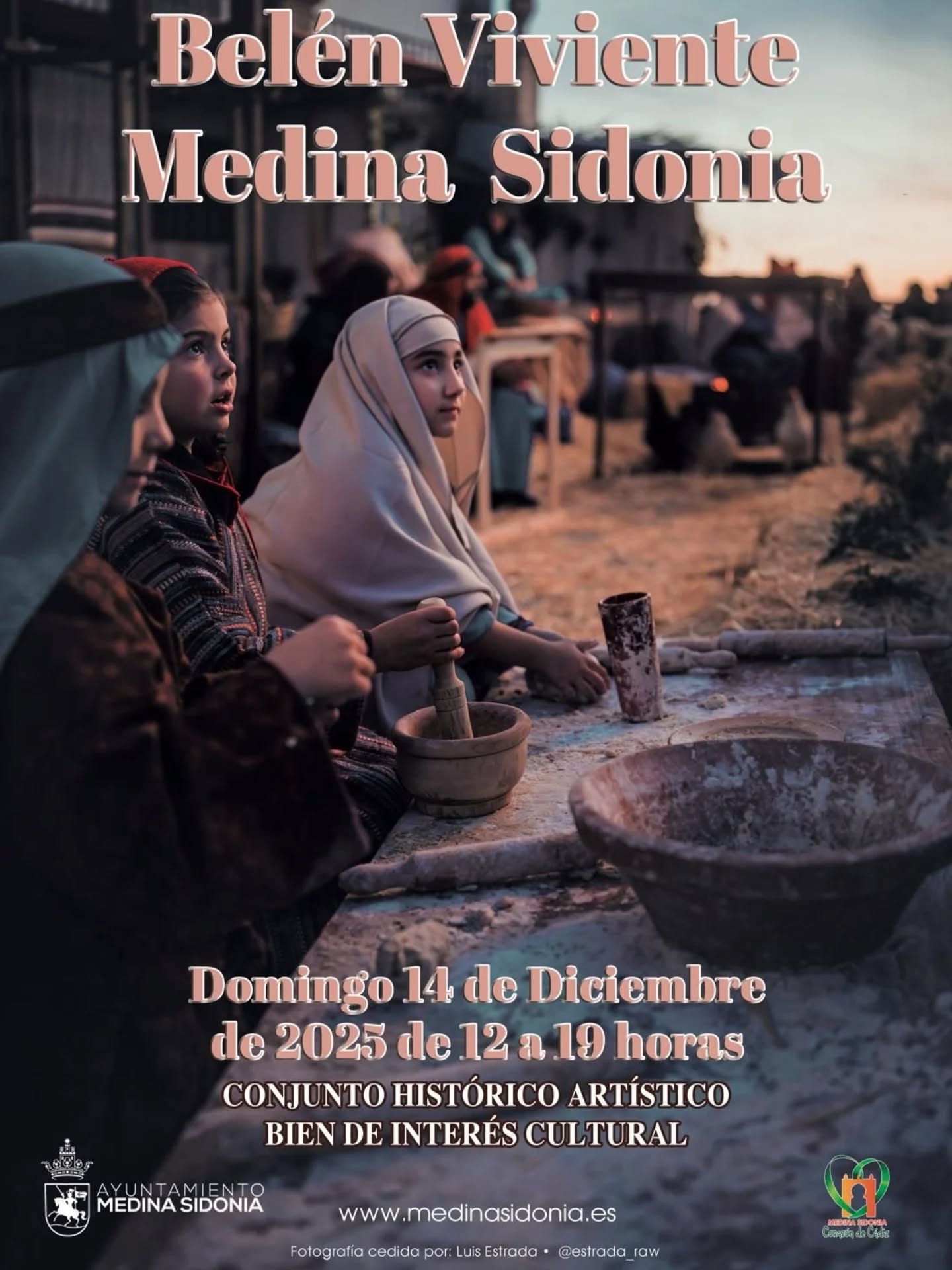 El Belén Viviente de Medina Sidonia celebra su 21ª edición, una de las citas navideñas más concurridas de la provincia, con cientos de vecinos recreando oficios y escenas tradicionales en el casco histórico. El recorrido atraviesa San Francisco de Paula, Llanete de Herederos, Bohórquez, Tintoreros, Cilla, Plaza de la Iglesia Mayor, la parte trasera de los jardines de la calle Cilla y el Arco de Belén, convirtiendo el centro en un auténtico pueblo de Judea con nacimiento, campamento de Reyes, empadronamiento romano, talleres artesanos, labores de campo y mercados.