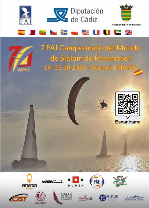 Del 19 al 25 de octubre de 2025, Bornos acogerá el VII Campeonato del Mundo de Paramotor Slalom, reafirmando su posición como uno de los destinos más destacados a nivel internacional para la práctica de este deporte aéreo.