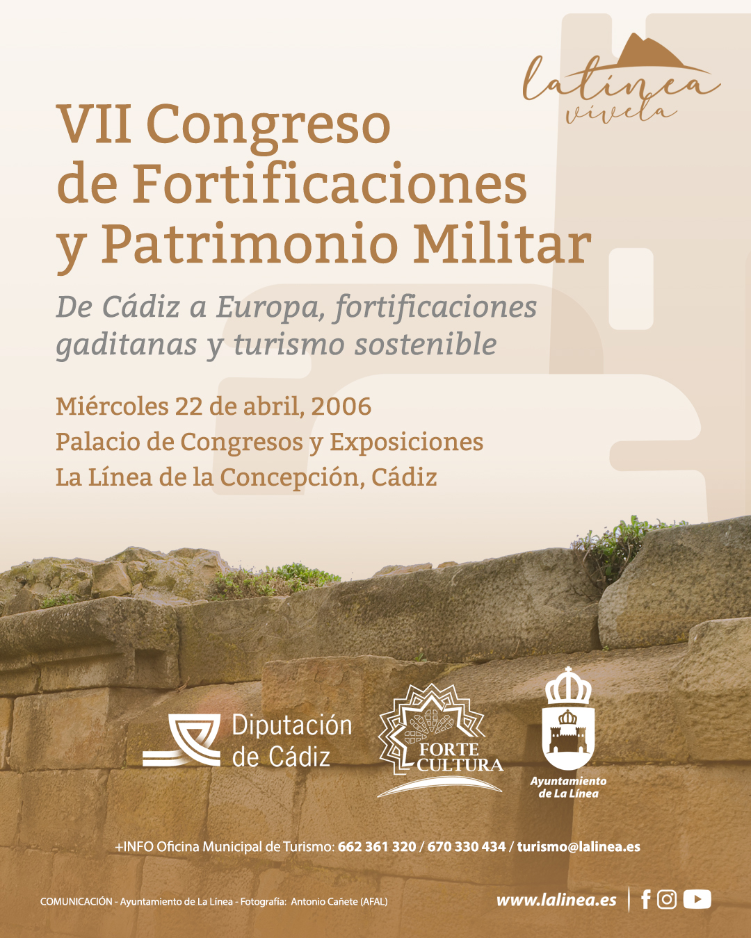 La jornada se celebrará el miércoles 22 de abril en el Palacio de Congresos y Exposiciones de La Línea de la Concepción, en Cádiz. El programa comenzará a las 8.30 horas con la inscripción y continuará durante todo el día con distintas sesiones temáticas, pausas para café y networking, además de una exposición sobre patrimonio fortificado del Campo de Gibraltar. La organización facilita además información a través de la Oficina Municipal de Turismo en los teléfonos 662 361 320 y 670 330 434, y en el correo [email protected].