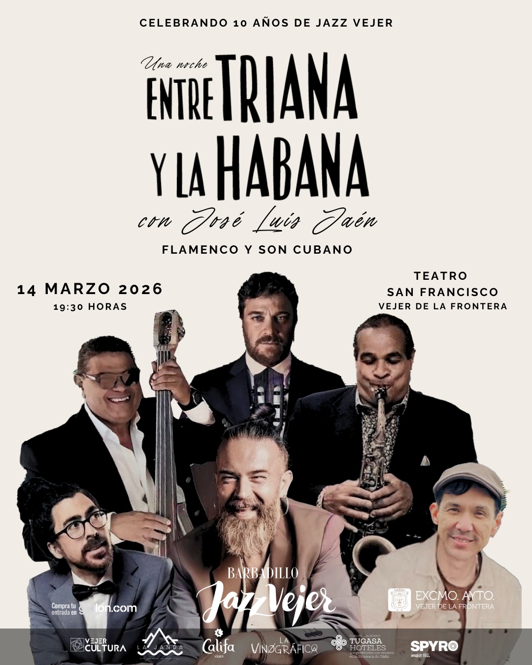 La actuación tendrá lugar el 14 de marzo de 2026, a las 19:30 horas, en el Teatro San Francisco de Vejer de la Frontera. El proyecto, liderado por José Luis Jaén, propone un recorrido por grandes clásicos de la música cubana y el flamenco, con una mirada mestiza y actual, acompañado por una sección rítmica cubana que aporta el pulso afrocubano y la energía del directo.