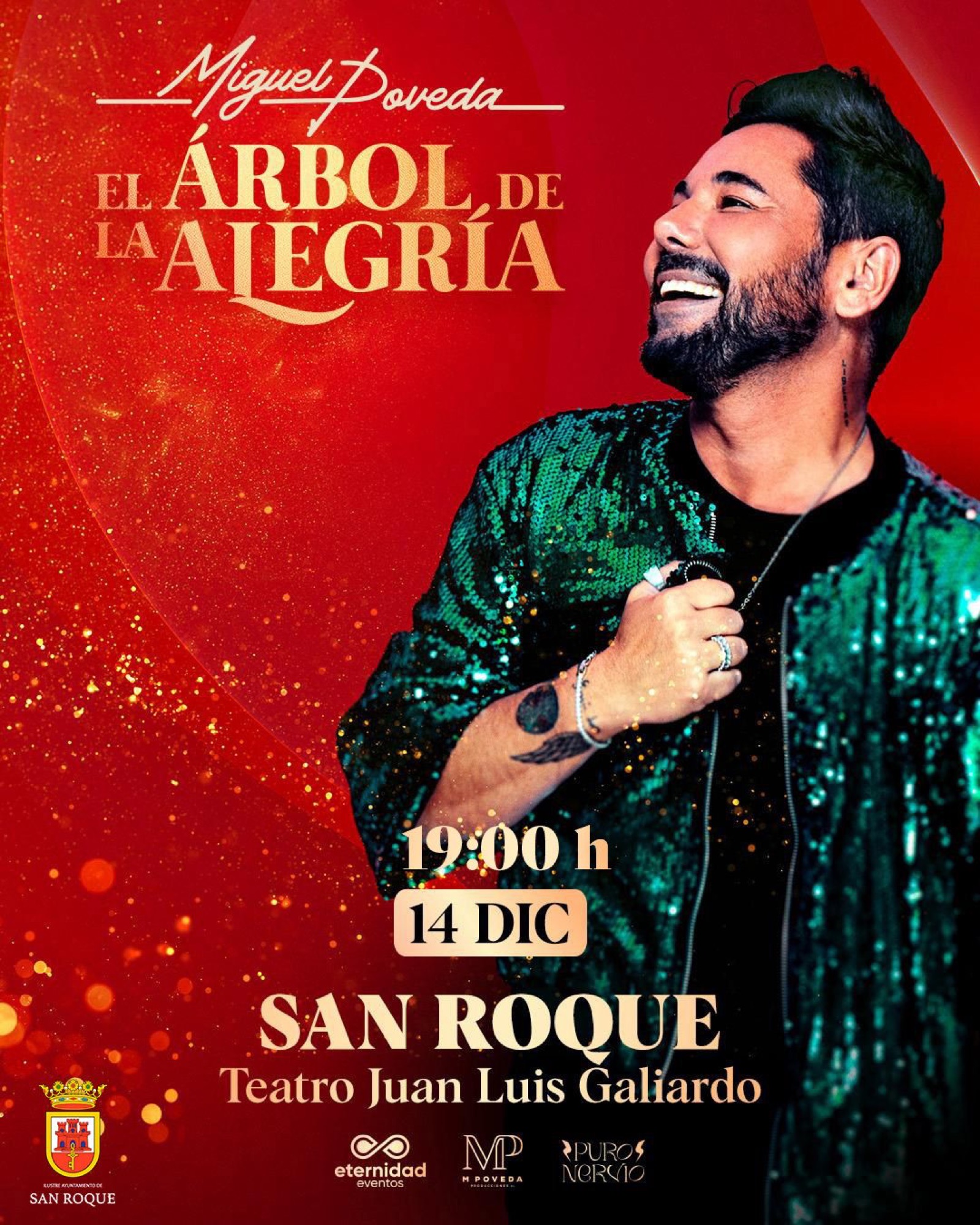 EMiguel Poveda presenta “El árbol de la alegría” en el Teatro Juan Luis Galiardo de San Roque. Un espectáculo con aire festivo y navideño en el que el cantaor recorre palos y canciones populares con su sello personal y una puesta en escena luminosa.