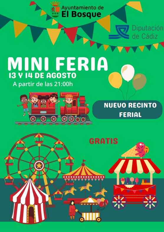 El Recinto Ferial de El Bosque se llenará de magia y diversión los días 13 y 14 de agosto con la celebración de la Mini Feria Infantil. A partir de las 21:00 horas, familias y visitantes podrán disfrutar de una tarde-noche repleta de juegos, atracciones, animación y muchas sorpresas pensadas para los más pequeños… ¡y también para los mayores!