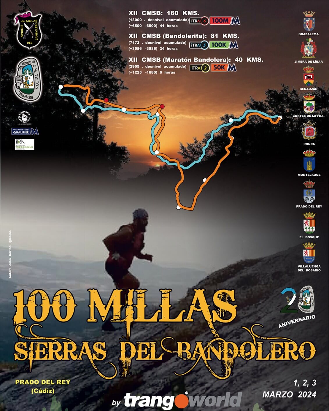 La localidad de Prado del Rey será el centro neurálgico y punto de partida de la carrera de montaña, que propondrá tres disciplinas: la denominada Bandolera, de 160.000 metros de distancia, la Bandolerita de 81.000 metros y la Maratón Bandolera de 40.000 metros. Además, se incluye este año como novedad la disputa de las 100 Millas por relevos. Los corredores dispondrán de 42 horas para completar el mayor de los circuitos. Se ubicará la salida en la localidad de Prado del Rey, a las 18:00 horas del día 1 de marzo, desde el Parque Blas Infante, y llegada al mismo lugar de salida, para la prueba de 160 kilómetros hasta el día 3 a las 11:00 horas; salida en la localidad de Prado del Rey, a las 10:00 horas el día 2 de marzo, desde el Parque Blas Infante, y llegada al mismo lugar de salida hasta las 10:00 horas del día 3, para la prueba de 81 kilómetros; y salida a las 7:30 horas del día 2 de marzo desde la población de Villaluenga del Rosario y llegada a Prado del Rey para la prueba de 40 kilómetros el día 2 de marzo a las 14:00 horas.