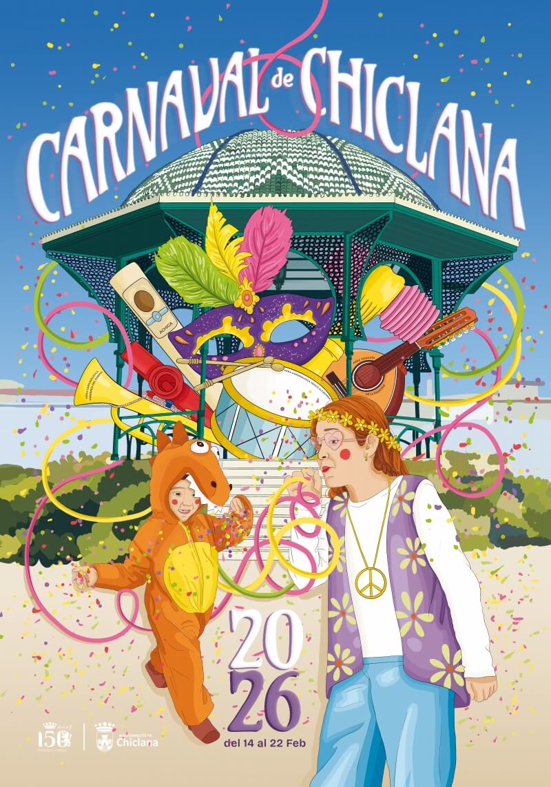 El segundo fin de semana incluye el Pasacalles Infantil (viernes 20), el Gran Carrusel de Coros por las calles del centro y la Gran Cabalgata del Humor (sábado 21), además de una intensa jornada final el domingo 22 con actuaciones y propuestas gastronómicas en la Alameda. El cierre llegará con el Encuentro de agrupaciones callejeras y la Quema de la Bruja Piti el domingo a partir de la tarde, en una despedida pensada para disfrutar Chiclana en clave festiva, con ambiente familiar y mucho Carnaval en el corazón de la provincia de Cádiz. El cartel es obra de Elisa Vela y Marien Otero.