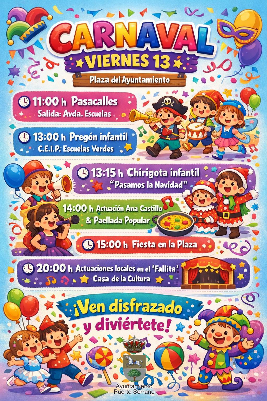 El Carnaval de Puerto Serrano 2026 volverá a llenar el municipio de color, música y ambiente festivo, con una celebración pensada para disfrutar en la calle y compartir la tradición carnavalesca en comunidad. Durante estos días, el pueblo se transforma con el espíritu del disfraz y la alegría propia de una de las citas más esperadas del calendario local.